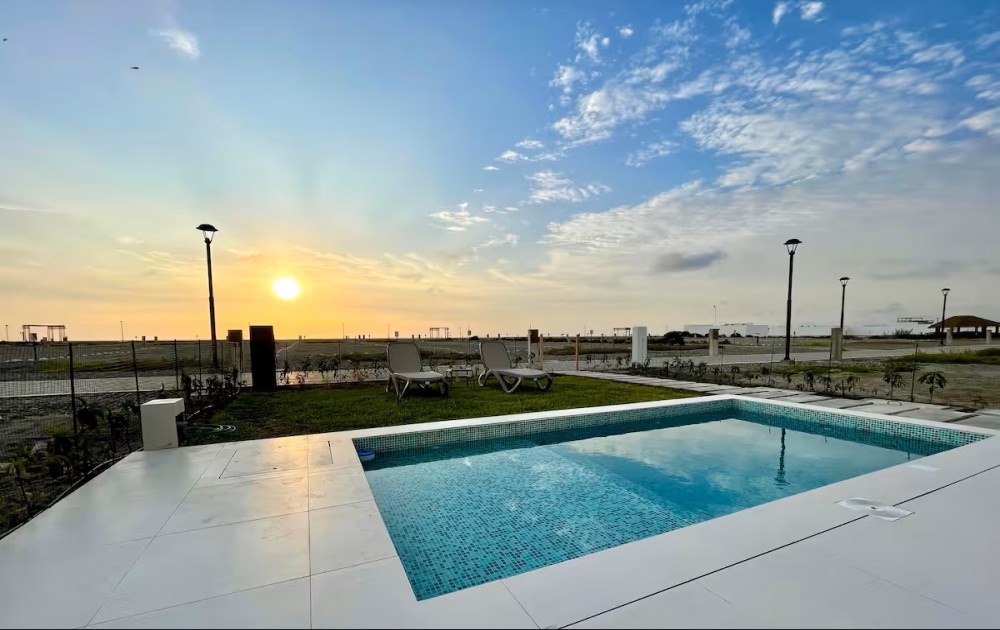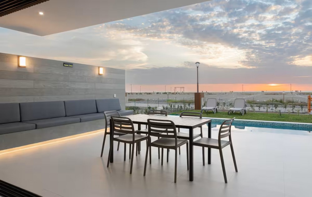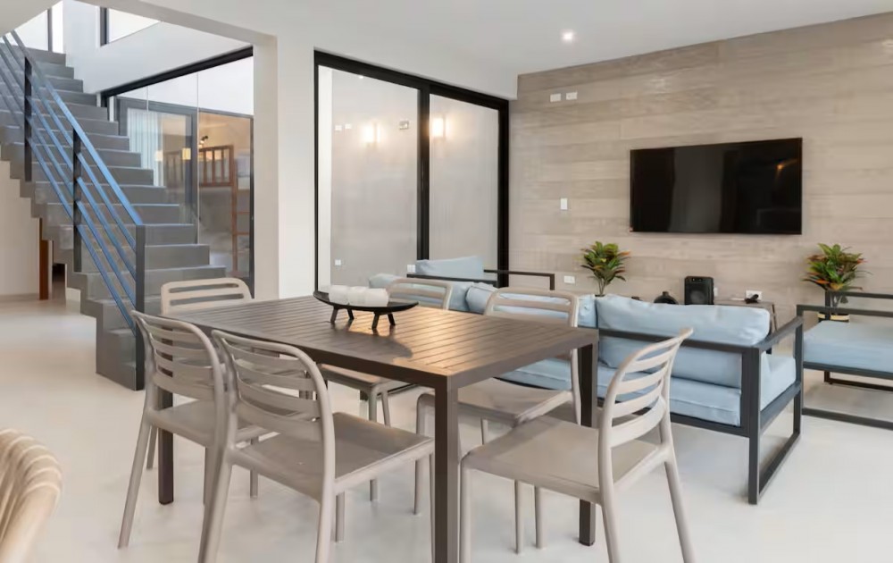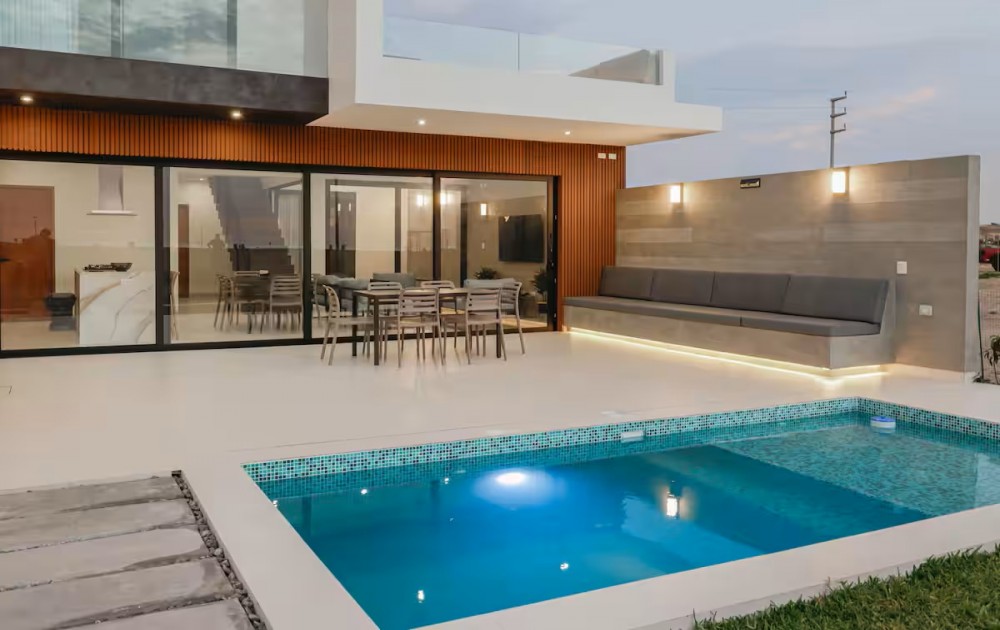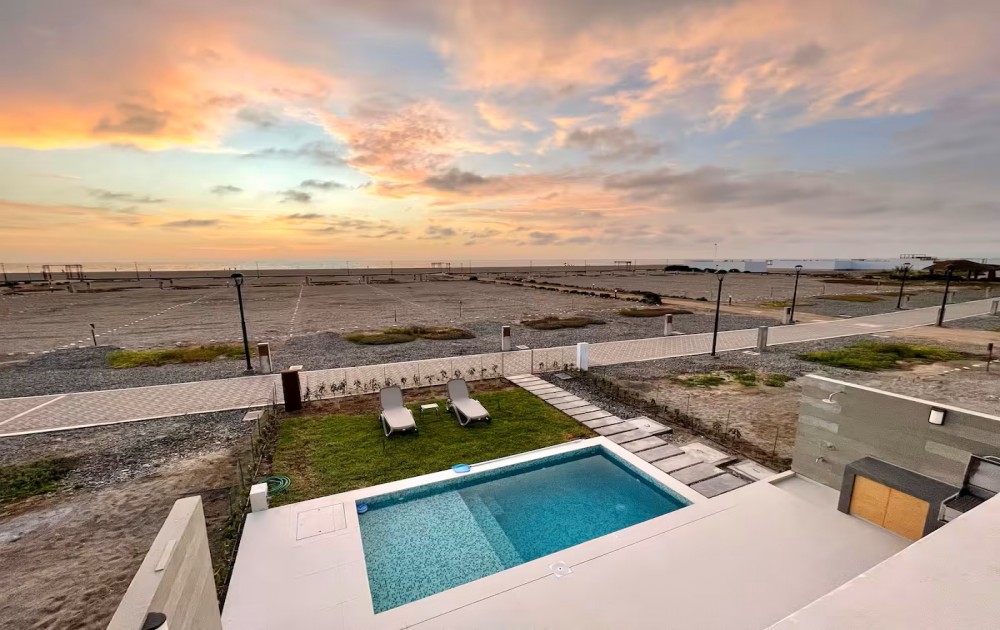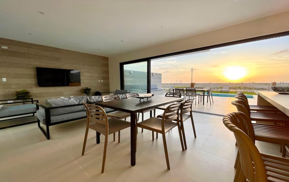 Esta casa frente al mar está diseñada para aprovechar al máximo su ubicación privilegiada frente a la playa. Con grandes ventanales que permiten una vista panorámica del océano. La estructura es moderna, con líneas limpias en un ambiente tranquilo y elegante para relajarse mientras se contempla el horizonte marino.