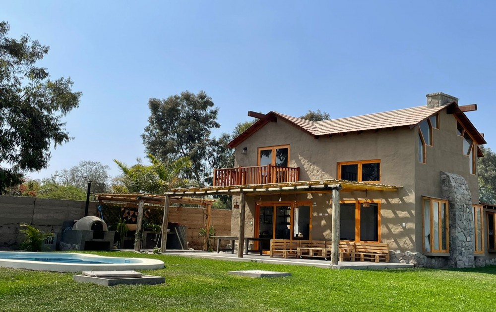 Vivienda unifamiliar ubicado en El Guayabo - Chincha, con un evidente estilo rustico por las paredes cubiertas de arcilla y el uso de tejas artesanales. Cuenta con dos niveles y un área de construcción de m2, ubicado en un lote de 1000m2.